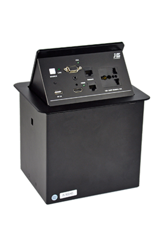 ? 某公司視頻會議項目,在設備選型中,金視JS-MF定制桌面插座)成為項目選定品牌及型號,視頻會議共使用43套金視產品;(其中21臺為銀色,19臺黑色 分1層和5層會議室使用)? 金視JS-MF定制產品?桌面電動翻轉插座,可藏式接線盒提供了一個整潔、緊湊、簡單的連接解決方案。采用電動控制,使用時只需輕按接線盒開啟按鍵,接線盒 180°旋轉,隱藏的各種接口即展現