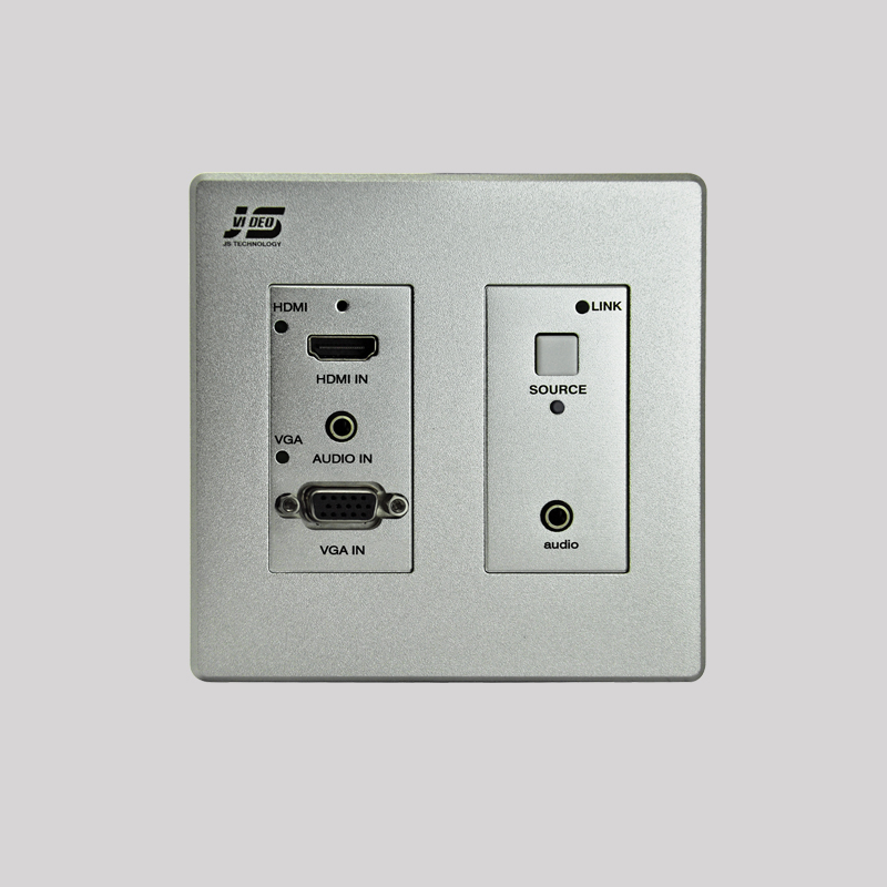 ? ? ? JS-601HD可藏式接線盒是一款帶高清轉換的適合桌面安裝的滑蓋式接線盒,采用高性能專業轉換芯片,將VGA+AUDIO、HDMI、信號轉換成高清格式的HDMI信號輸出,VGA支持分辨率640*480 至1920*1080P或1920*1200,用戶可以通過面板上的 按鍵來選擇切換信號.? ? ? ?JS-601HD可