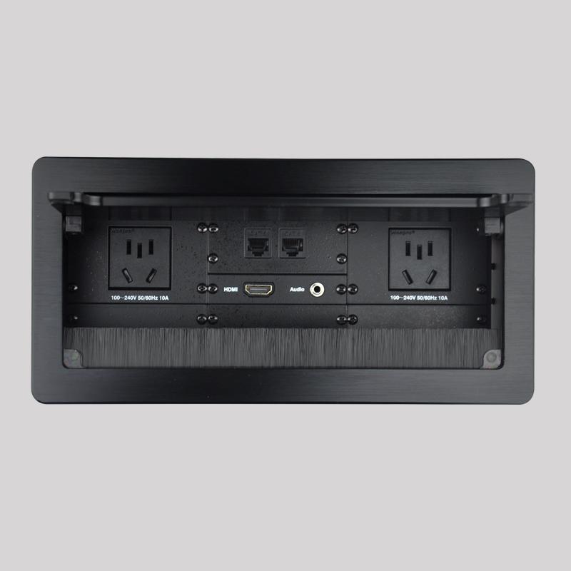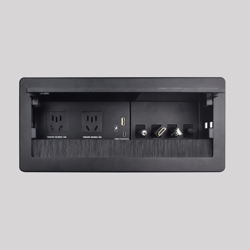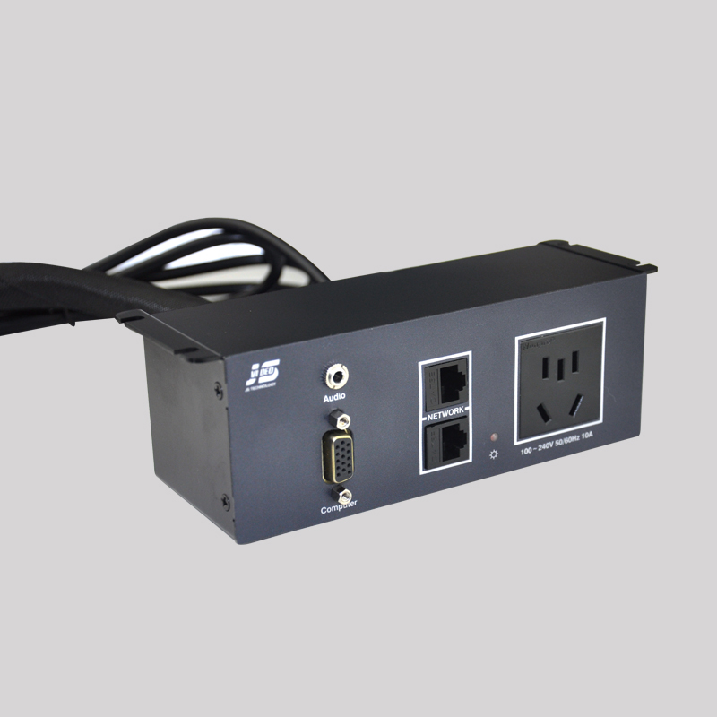 ?JS-Z300+ 系列可藏式接線盒提供了一個整潔、緊湊、簡單的連接解決方案;采用掀蓋式設計,隱藏安裝,使面板與桌面保持齊平,質優且價廉,供簡易辦公連接使用。