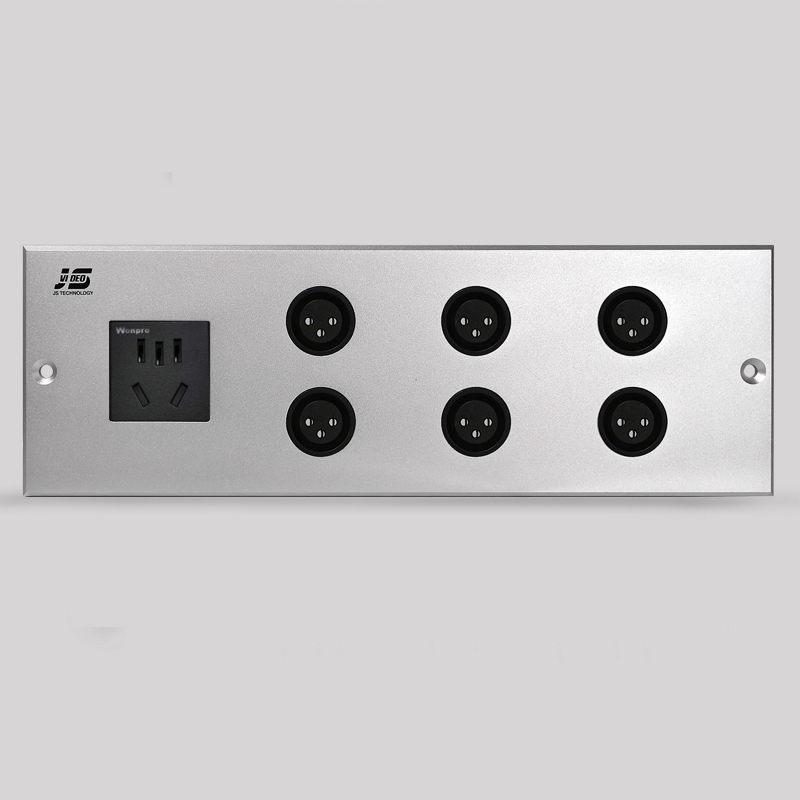 ? ? ? JS-WP111墻面接線面板提供了墻面一體化連接解決方案,可以直接安裝在 86 型底盒內,多種類型的接口組合才可以充分滿足不同使用者的需求,面板材質選用 4mm 厚度鋁鎂合金,表面經過氧化、拉絲、噴砂多道技術工序處理,整體大方,滿足高檔會議,辦公,居家使用。