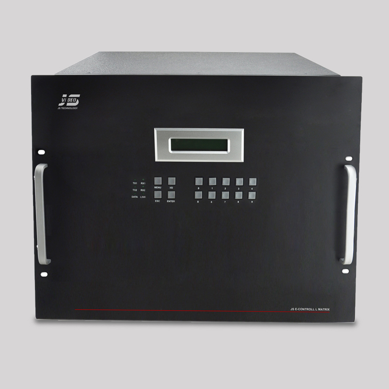 JS-MHD7272系列混合矩陣是一款高性能的高清視頻信號交換設備,可以加載18個信號輸入板卡和18個信號輸出板卡,最大可達到72路信號源輸入,72路信號源輸出。該矩陣支持各種高清數字板卡和模擬信號板卡組合,以及各種信號之間的交叉切換,任何一路信號的輸出可以自由選擇任何一路信號源而不會干擾其它的輸出,使信號傳輸衰減降至最低,圖像和聲音信號能高保真輸出。
