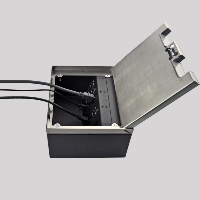 JS(金視)系列可藏式接線盒可以完美的展現(xiàn)線纜及接口的隱藏,且操作比較簡(jiǎn)單,通過按壓(或掀起)接線盒表面面板來(lái)實(shí)現(xiàn)彈開和閉合,閉合后所有接口都隱藏起來(lái),各種線纜可以有序的隱藏在接線盒后面,接線盒面板表面與桌面保持水平。