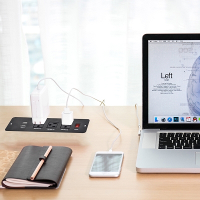This recessed power strip is made of high grade aluminum-magnesium alloy, it can be mounted on furniture. provide people power source within reach. No more crawling under the desk to find power strips.Widely used in hotel/office/home etc.