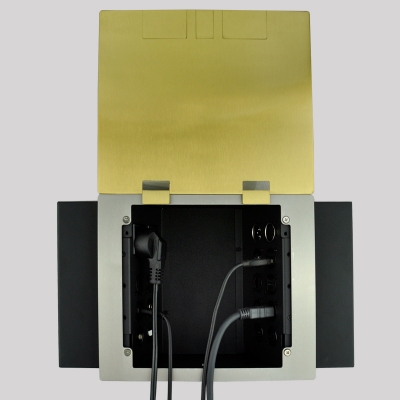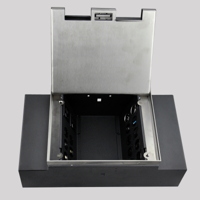 JS-DC400ST 地面接線盒可永久性安裝在各種地面,用于解決從地面連接布線的各種端口。左右兩側斜插式設計,更有效的利用空間并滿足多接口需求,獨有出線口式設計,允許連接大量線纜合蓋使用。